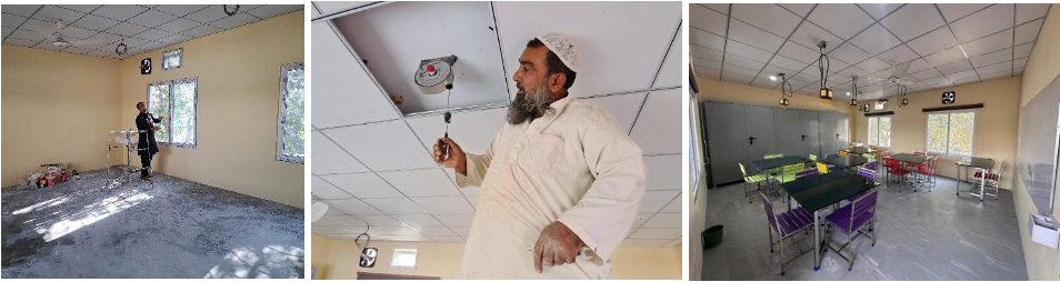 Nach dem Eintreffen des Teams in der SAYA SCHOOL MAIRA AKKU begann das Einrichten des Labs und die Unterrichtung der Mitarbeiter und der Schüler über Hygienemaßnahmen. Ein Klassenraum wurde renoviert, staubdichte Doppelglasfenster, eine stabile Tür eingebaut, ein belastbarer Fußboden verlegt, Elektroanschlüsse an den Wänden und deckenhängend installiert und eine Zwischen- decke eingezogen, ein Wasseranschluss hergestellt, Malerarbeiten ausgeführt. Nach unseren Vorgaben waren Möbel gebaut worden.