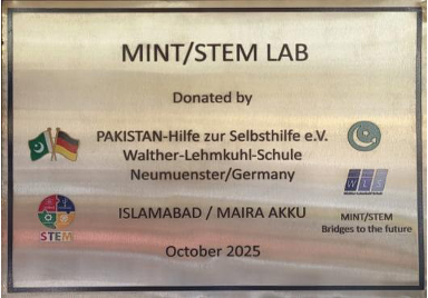Bei der Inauguration, zu der Vertreter der Deutschen Bot- schaft ISLAMABAD und Freunde der SAYA SCHOOL eingeladen waren, enthüllten Hans Joachim Gerber, der Vorsitzende PHzSHeV und Andreas Bitzer, der Direktor der WALTHER-LEHMKUHL-SCHULE NEUMÜNSTER die Spendertafel.